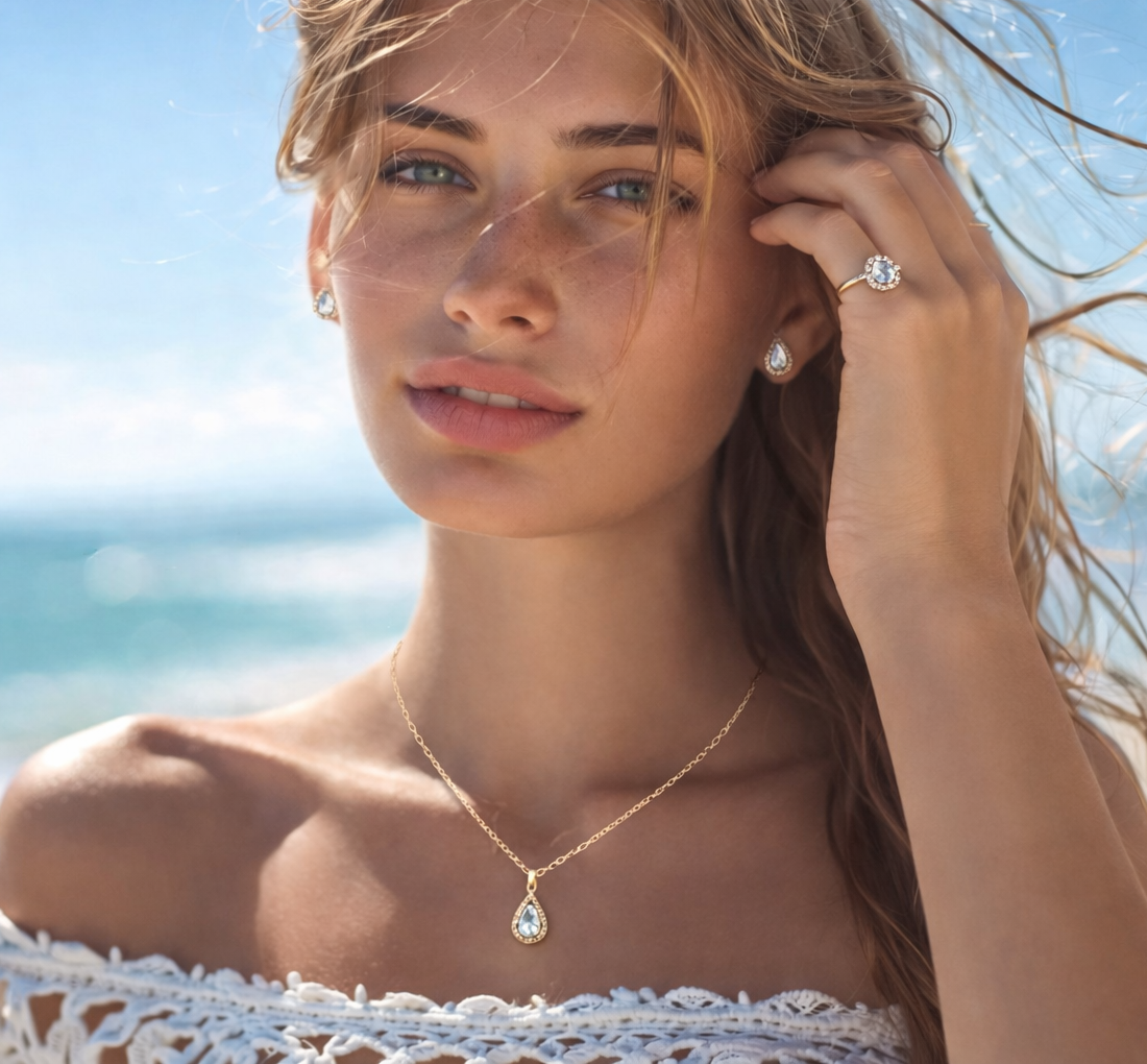 Celebrate March’s birthstone with the serene beauty of Aquamarine, loved for its ocean-blue sparkle and airy elegance.
