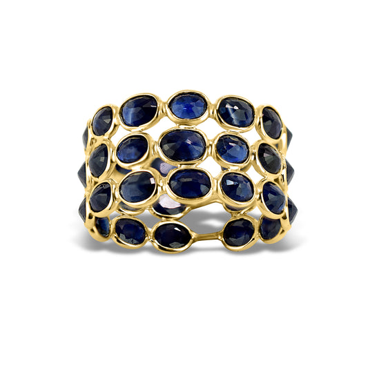 14k Oval Shape Triple Row Bezel Ring