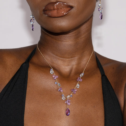 14k Blue Topaz Amethyst Tanzanite Necklace