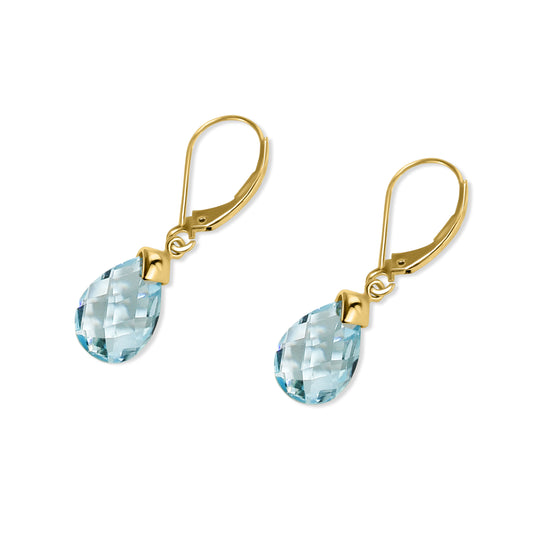 14k Blue Topaz 3-Line Dangle Hoop Earring
