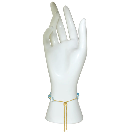 14k Blue Topaz Coin Adjustable Bolo Bracelet
