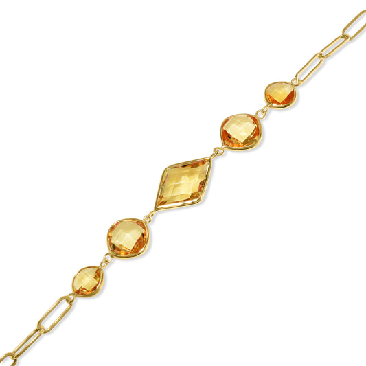 14K Citrine Bezel Paperclip Chain Link Bracelet Adjustable