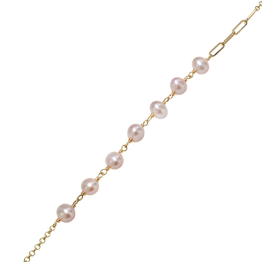 14k Natural Pink Pearl Fancy Chain Adjustable Bracelet