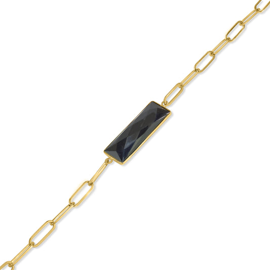 14k Black Onyx Rectangle Bar Paperclip Bracelet