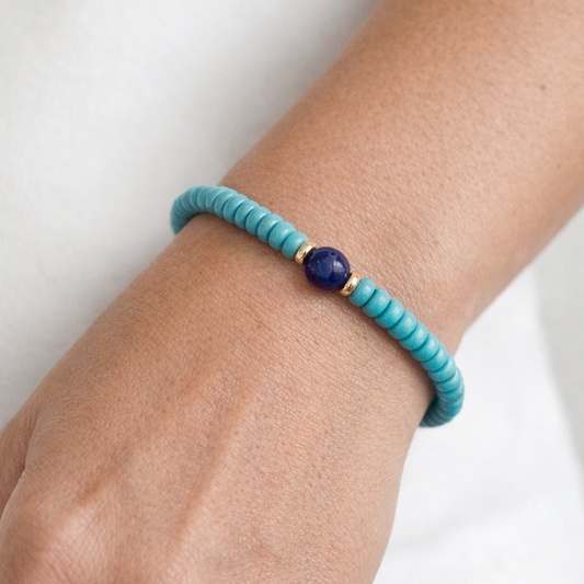 14k Turquoise & Lapis Gold Roundel Stretch Bracelet