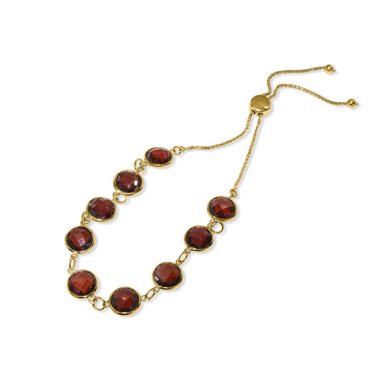 14k Garnet Round Bezel Link Bolo Bracelet