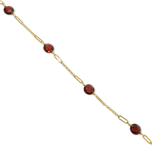 14k Garnet Round Paperclip Bracelet