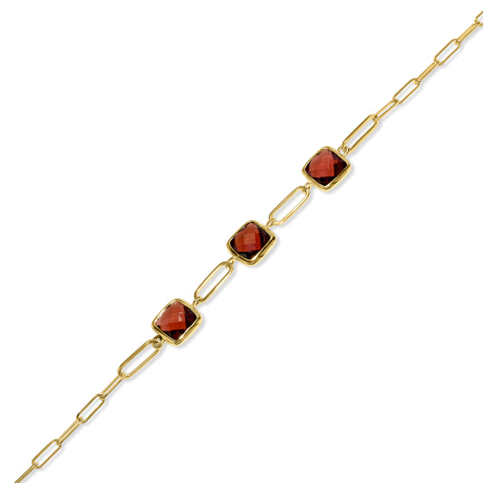 14k Garnet Square Paperclip Bracelet
