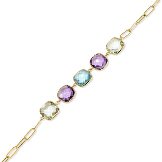 14k Multi Gemstone 5 Cushion Bezel Bracelet