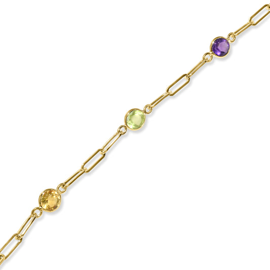 14k Multi Gemstone Oval Link Paperclip Bracelet