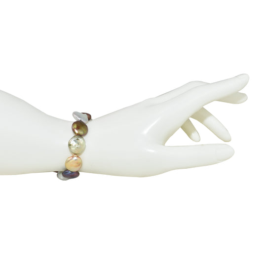 Multi Freshwater Pearl Coin Stretch Bracelet