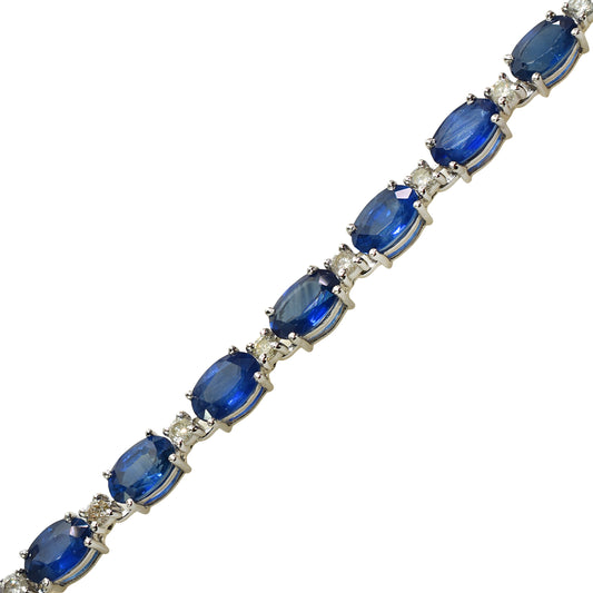 14k White Gold Sapphire Diamond Oval Cut Tennis Bracelet