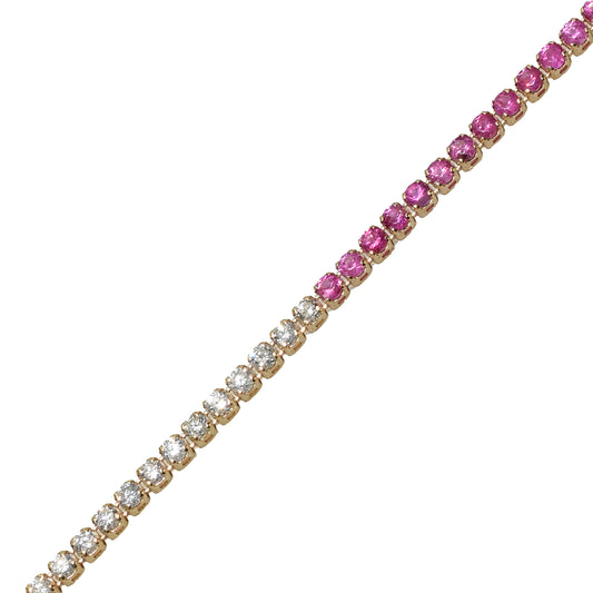 14k Pink Sapphire Diamond Round Cut Bracelet