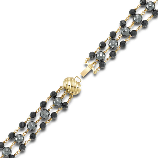 14k Black Onyx Hematite 3 Row Link Bracelet