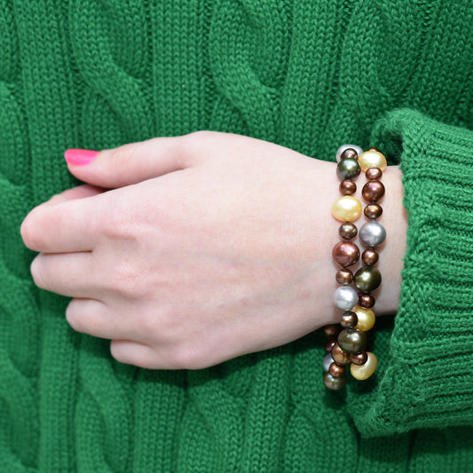14k 2 Layer Chocolate Multi Freshwater Pearl Bracelet