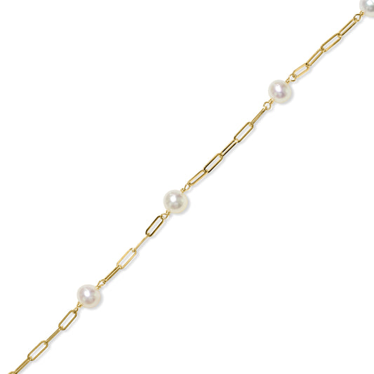 14k White Pearl Paperclip Bracelet