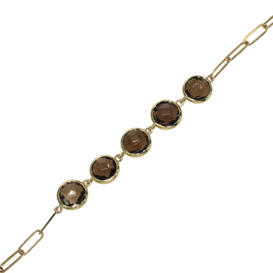 14k Smoky Quartz Round Bezel Paperclip Bracelet