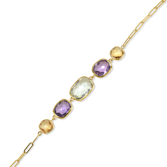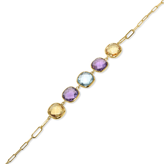 14k Multi Gemstone 5 Cushion Paperclip Bracelet