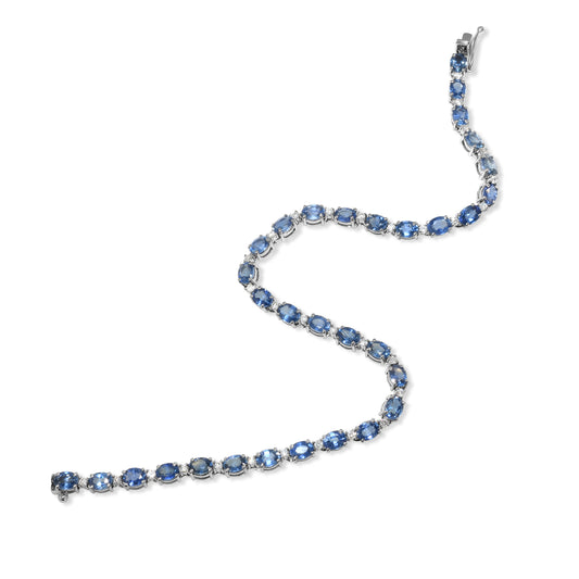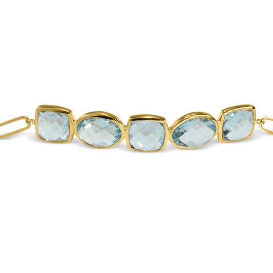 14k Blue Topaz 5 Bezel Bar Paperclip Bracelet