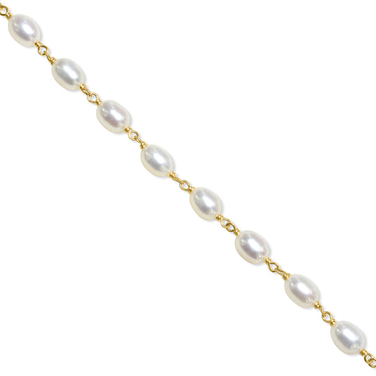 14k White Freshwater Pearl Paperclip Station Bracelet