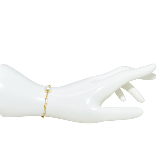 14k White Freshwater Pearl Center Paperclip Chain Bracelet
