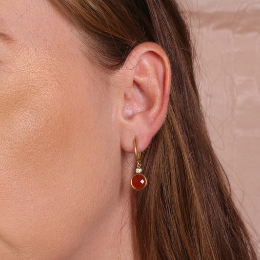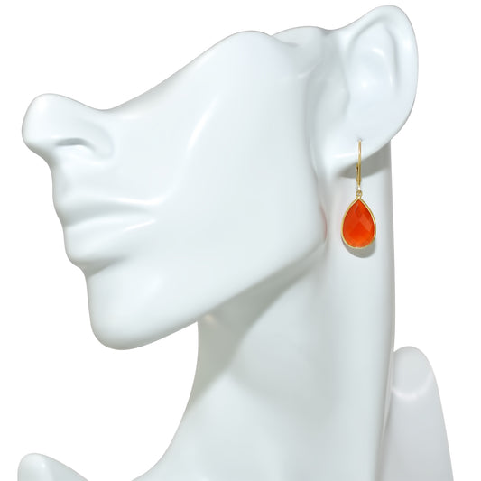 14k Carnelian Pear Shape Bezel Huggie Hoop Earring