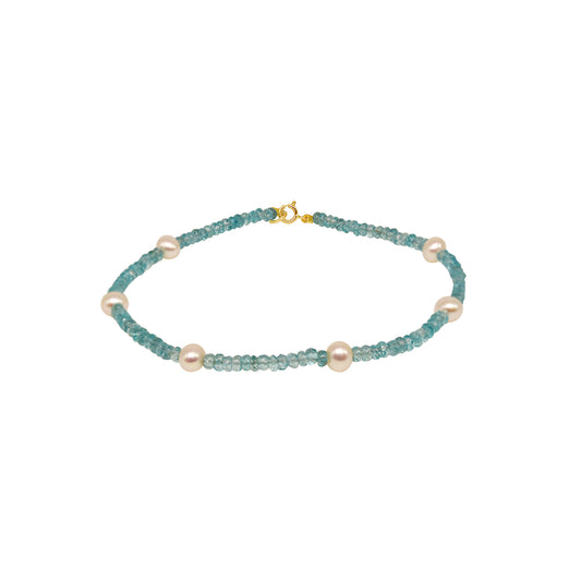 14k Rondelle Beaded Gemstone & White Freshwater Pearl Anklet