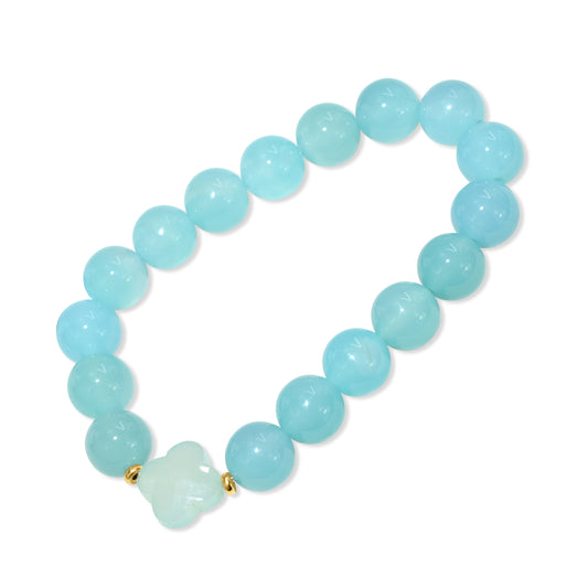 14k Blue Chalcedony Pear Gold Ball Leverback Earring