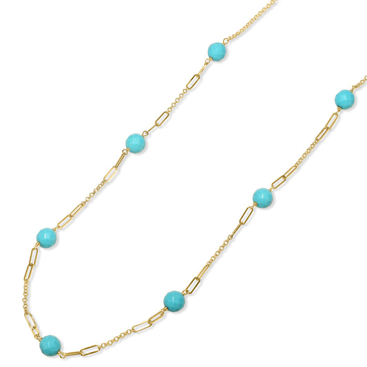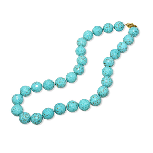 14k Faceted Turquoise Bead Round Knotted Necklace