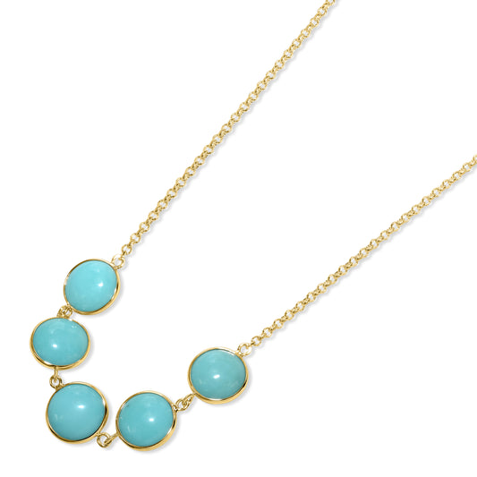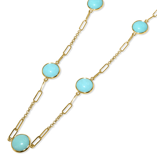 14k Swiss Blue Topaz Turquoise 7 Station Necklace