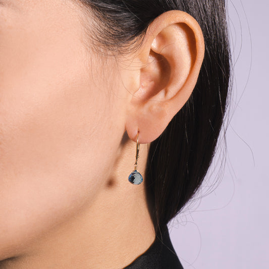 14k Swiss Blue Topaz Onion Briolettes Bead Leverback Earring