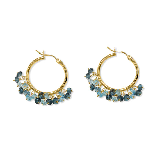14k Mixed Blue Topaz Cluster Hoop Earring