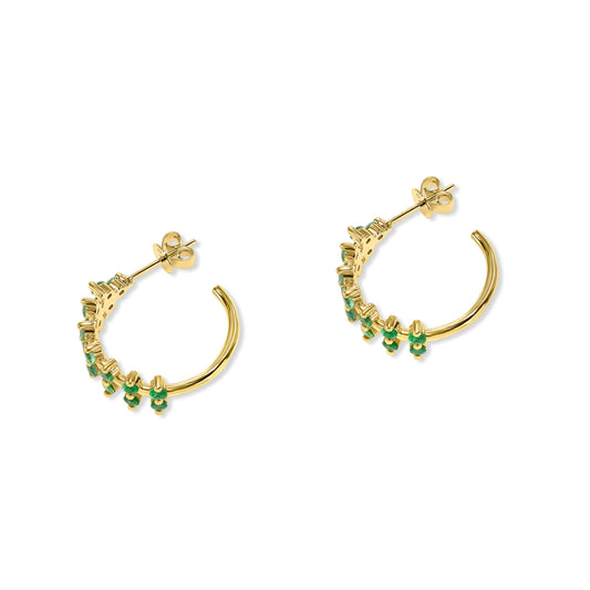14k Multi Gemstone 3-Line Drop on Hoop Earring
