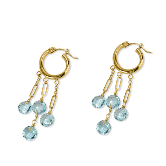 14k Blue Topaz 3-Line Dangle Hoop Earring