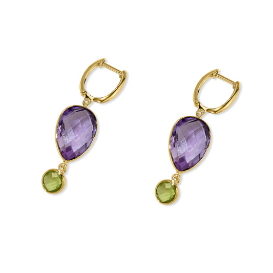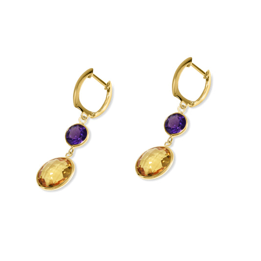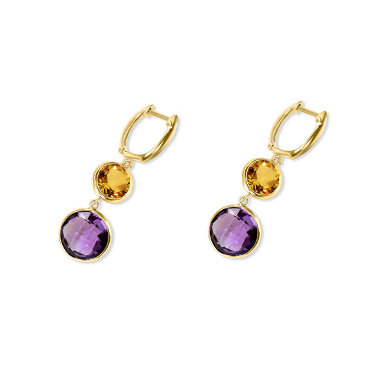 14k Citrine Amethyst Round Bezel Hoop Earring