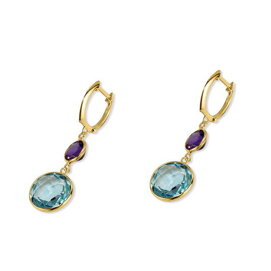 14k Amethyst Blue Topaz Round Bezel Hoop Earring