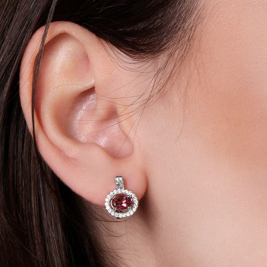 14k White Gold Pink Tourmaline Vs Diamond Hoop Earring