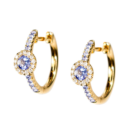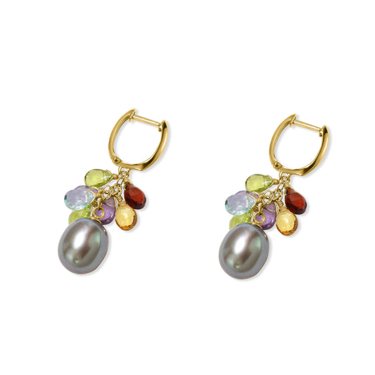 14k Blue Topaz, Peridot, Tourmaline, Amethyst, Citrine, Grey Pearl Hoop Earring