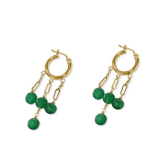 14k Green Onyx 3-Line Drop Open Hoop Earring