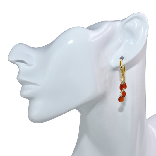 14k Carnelian 3-Line Drop Open Hoop Earring