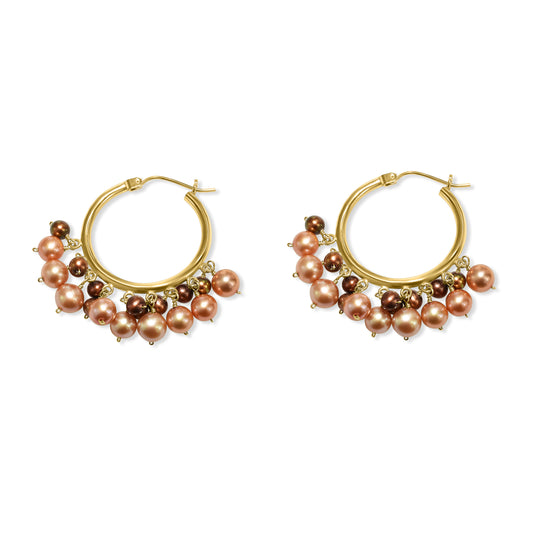 14k Multi Champagne Pearl Cluster Hoop Earring