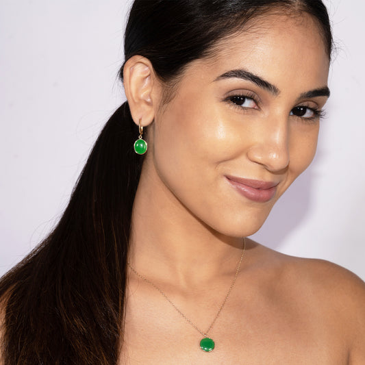 14k Green Jade Bezel Huggie Hoop Drop Earring