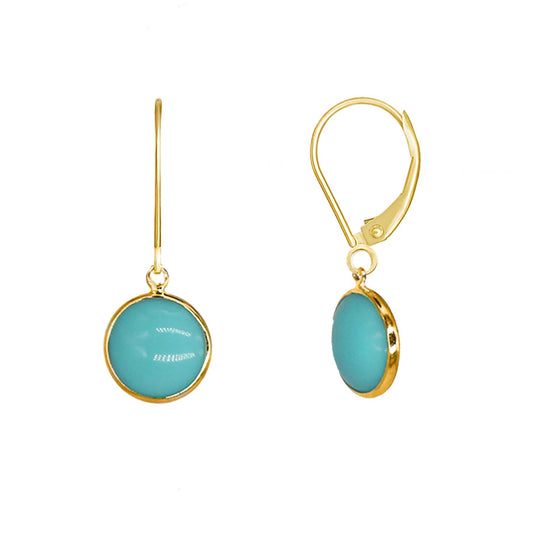 14k Stabilized Turquoise Round Bezel Drop Leverback Earring