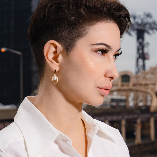 14k Halo White Freshwater Pearl Huggie Hoop Drop Earring
