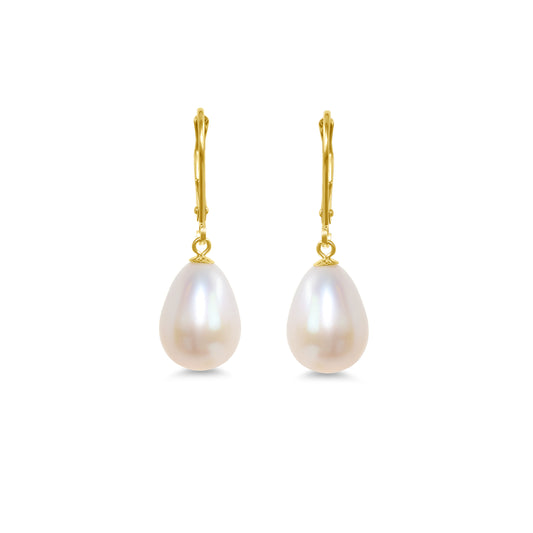 14k White Freshwater Pearl Drop Leverback Earring