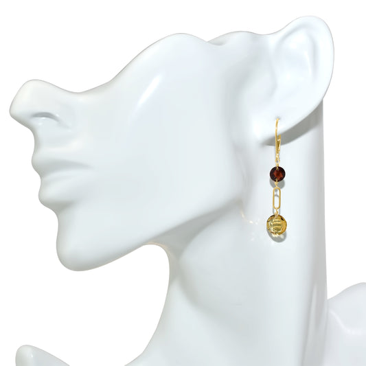 14k Garnet And Citrine Coin Dangle Leverback Earring
