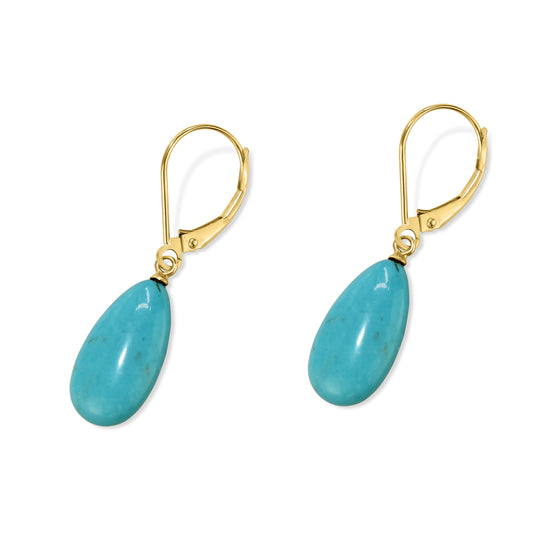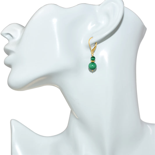 14k Yellow Gold Malachite Dual Ball Leverback Earring