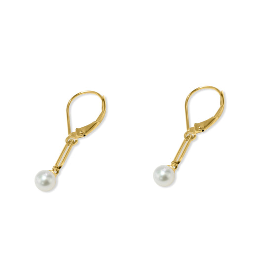 14k White Gold White Pearl Gold Chain Leverback Earring