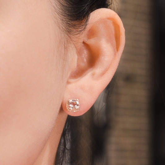 14k VS Diamond 0.19CT Morganite Cushion Post Earring