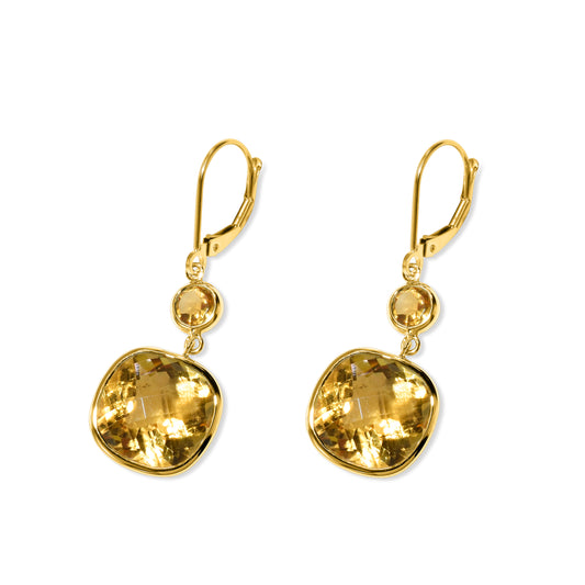 14k Yellow Gold White Topaz Chandelier Leverback Earring